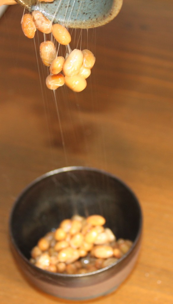 Le natto est un aliment sain et goûteux. Étant à base de fèves de soya, il est naturellement riche en fibres et en protéines végétales. Les fèves de soya sont transformées en natto par l’action de bacillus subtilis natto. Le petit biofilm blanc qui entoure les fèves contient une grande quantité de nutriments, dont la vitamine K2 et la nattokinase.